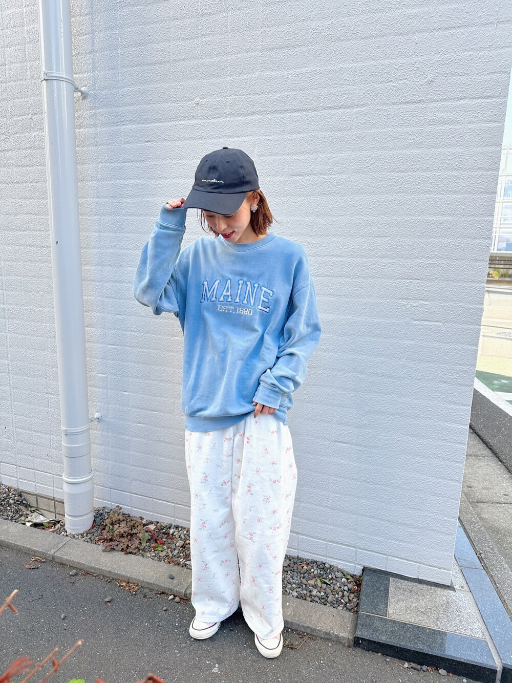 フラワープリントパンツは カジュアルにも合わせやすいです👖🌷 小柄さんがゆるっと履くのも可愛い♡