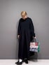 ニットドッキングワンピースを着てみました。 ウエストはゆったりしているので 体のラインは拾いません。 スカート部分はボリューム感たっぷりで、 動くとより可愛さがわかります。 1枚で決まるワンピースです。