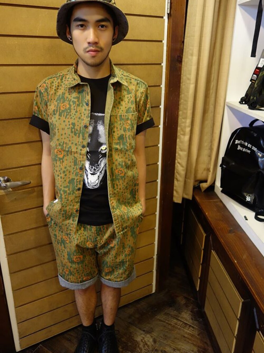 帽子:MANIA x LESS Camouflage Military Hat 墨鏡:NEFF MALIBU Sunglasses 襯衫:MANIA x LESS Camo Shirt 短袖:MANIA x LESS Crazy Fox Tee 短褲:MANIA x LESS Camo Shorts