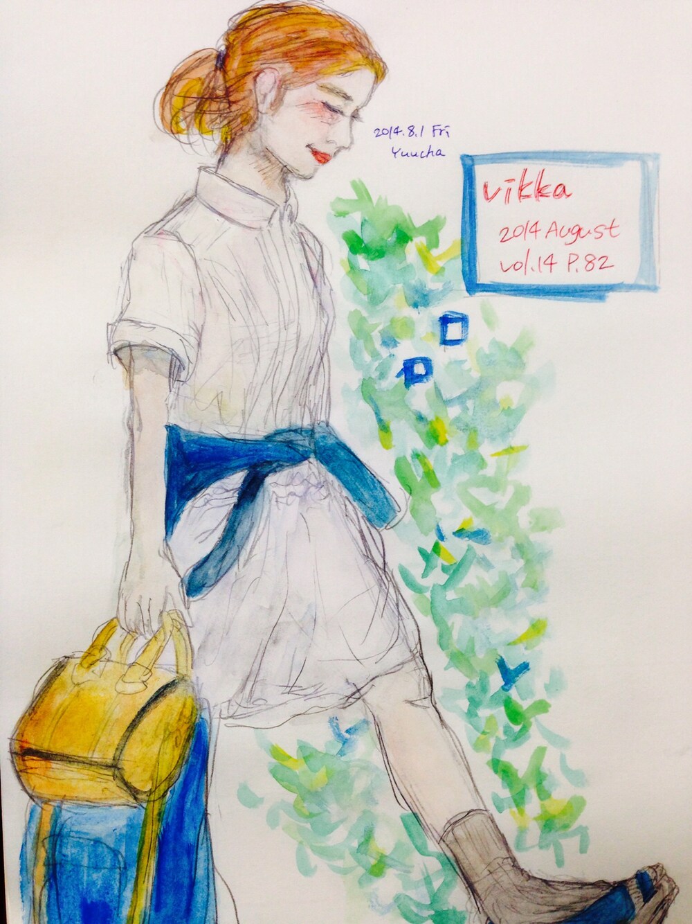 ヴィカの雑誌をたまたま手に取りパラパラと読んで可愛いと。買いました。笑 スケッチして水彩で色着けしました。