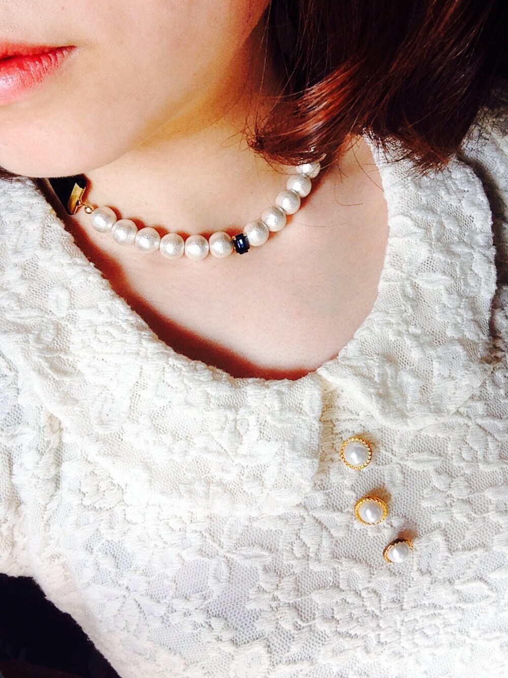 ハンドメイドの既製品でこのタイプの物を見つけ、可愛かったので自分で作ってみました(*^^*)上品なコーデに合わせるも良し、カジュアルなコーデにプラスし上品さを出すも良し!