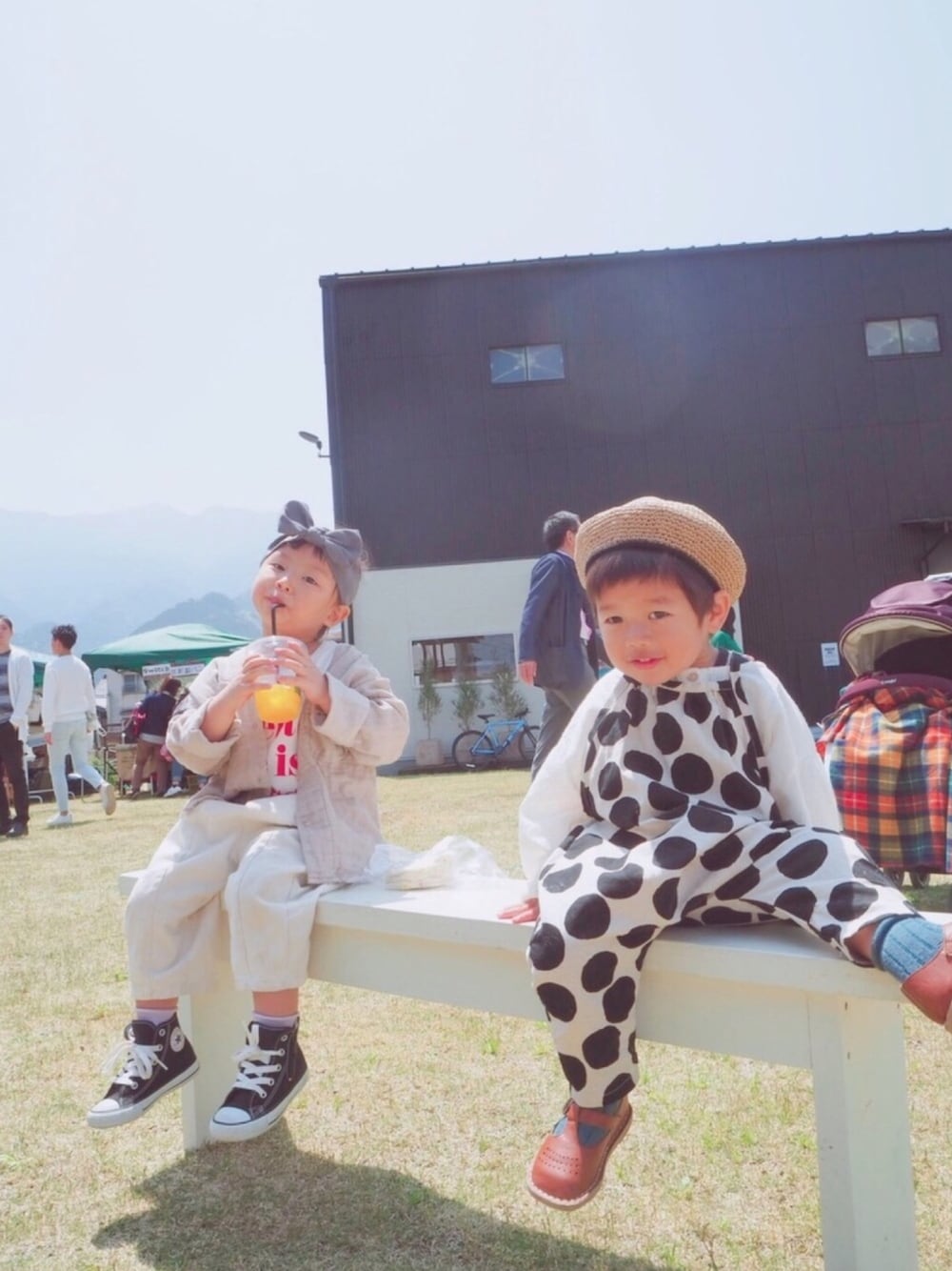 りっきーがだいぶ前に更新してたから、今更ですが、記録用にペタリ 隣の市でやってるマルシェを見つけて、いつもの「明日何してる?」ノリで、りっきー親子を誘って(笑)、またしても週2で会えました♡ いつも付き合ってくれる二人、ありがとう✨ こちらに越してきてからは、こうゆうイベントを見つけることに命かけてます(笑) 関東にいた時は情報が莫大で、毎日どこかしらで楽しそうなイベントがあって、電車や車でお出かけしてたから 私も娘も、そうゆう楽しいことをこっちでもいっぱい経験したい! そして生まれたばかりの妹にも体験させてあげたい!! 母は必死です(笑) 四国にお住まいの皆さま、情報お待ちしてます✧*。 この日は、マルシェを意識したナチュラルコーデ˚‧ 𓆸 monmimiさんからのプレゼント・柔らかジャケットに、去年から履いてるホワイトジーンズ、りっきーからもらったバースデイTにデカリボンがポイント🎀 最近のコーデの中でもなかなか好きなコーデです◟́◞̀♡