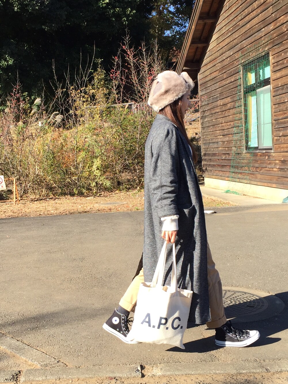 動物公園にて🐴 このジャケットはスウェットっぽい素材 なので、カジュアルにも使えます。 風が吹くと寒いので 髪の毛下ろしといて良かった〜 そして頭も暖かくて良かった〜☺︎