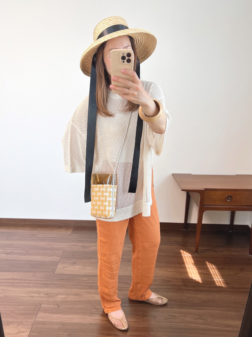 透かし編みニットはカラーパンツ🍊が より可愛く見えると思う! instagram⇨nahoko_nfl