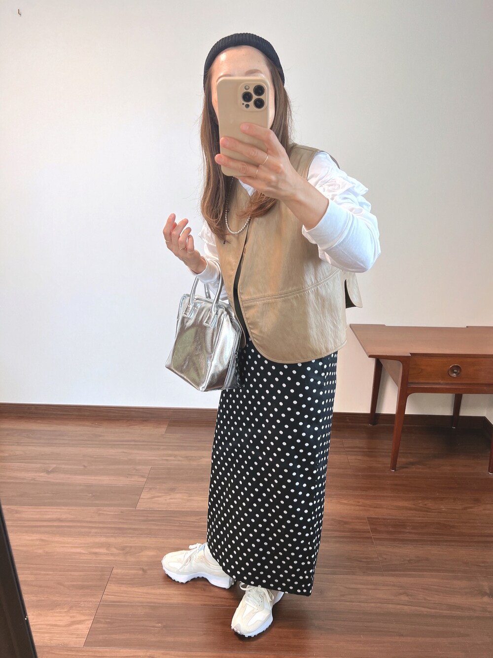 nanのベスト「フェイクレザー2wayベスト」を使ったコーディネート
