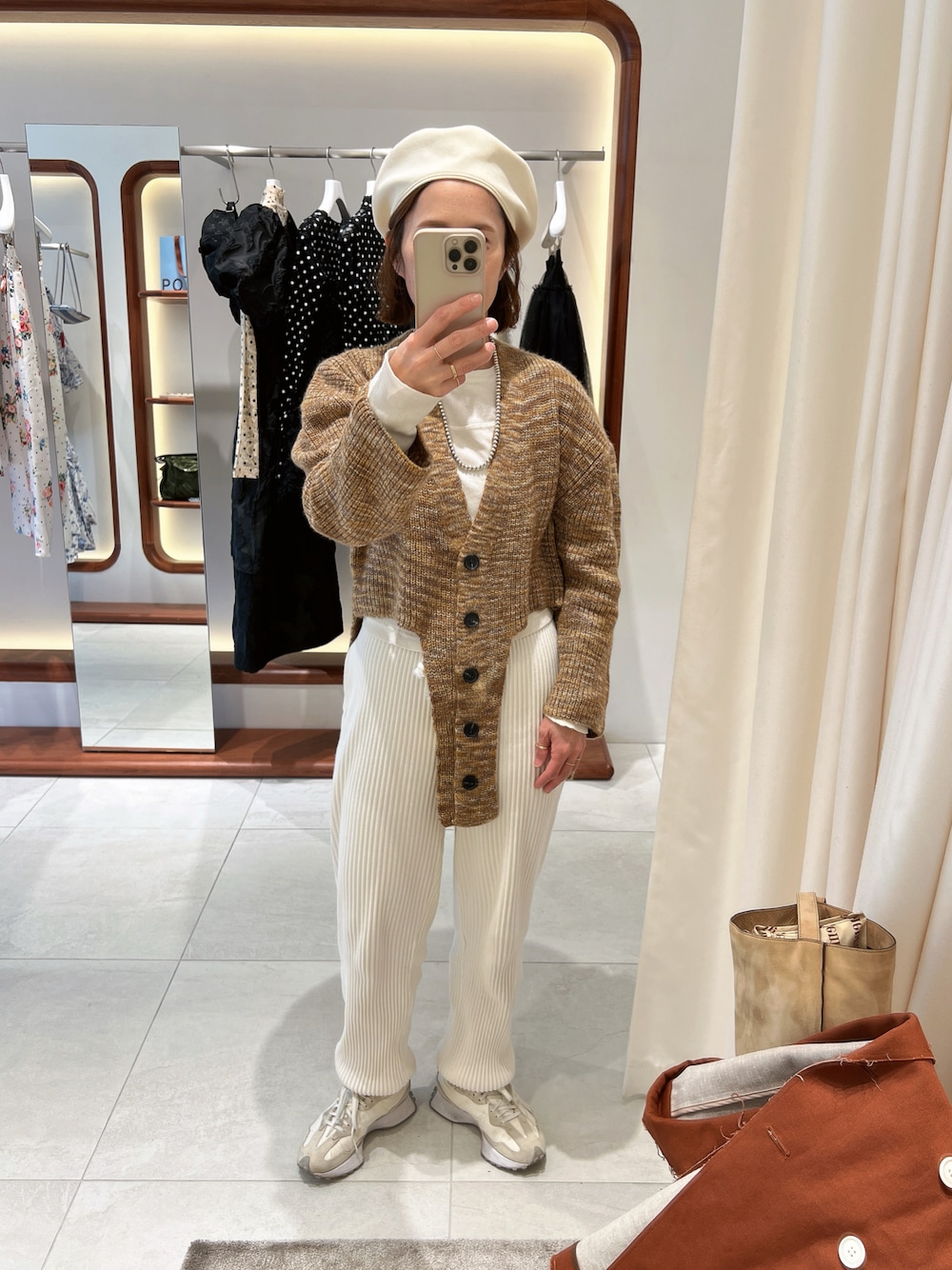 たかこちゃんが東京に来てくれて モーニング🍳からショッピング🛍️した 幸せな日のコーデ♡ あー、楽しかった🥰 サンセルフのニットは去年の冬に買ったもので ようやく着れた🐈