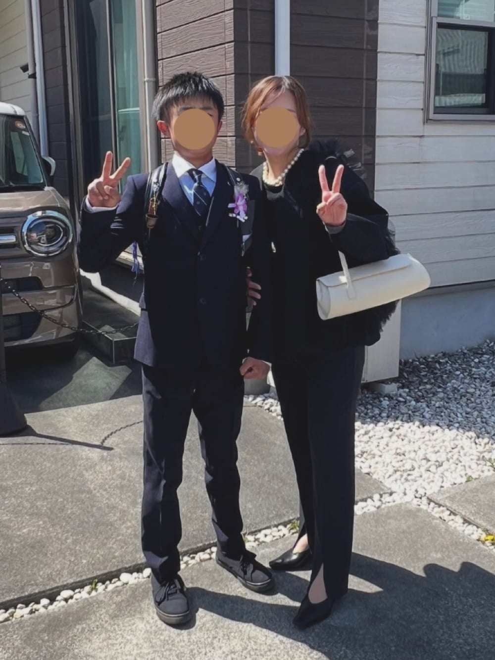 大切な小学校の卒業式は 大好きなアダムエロペでコーデ🖤 息子は私の背を抜きました🙌 もっともっと大きくなーれ!!