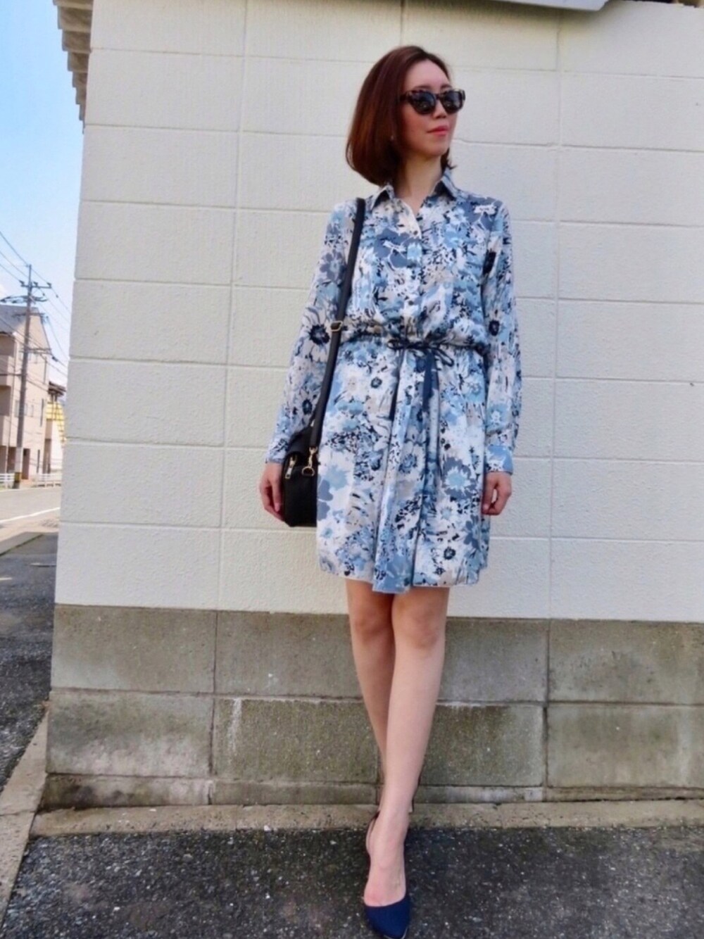白&ライトブルー&ブルーの花柄が涼やか。お気に入りのワンピースです◡̈⃝✩‧₊