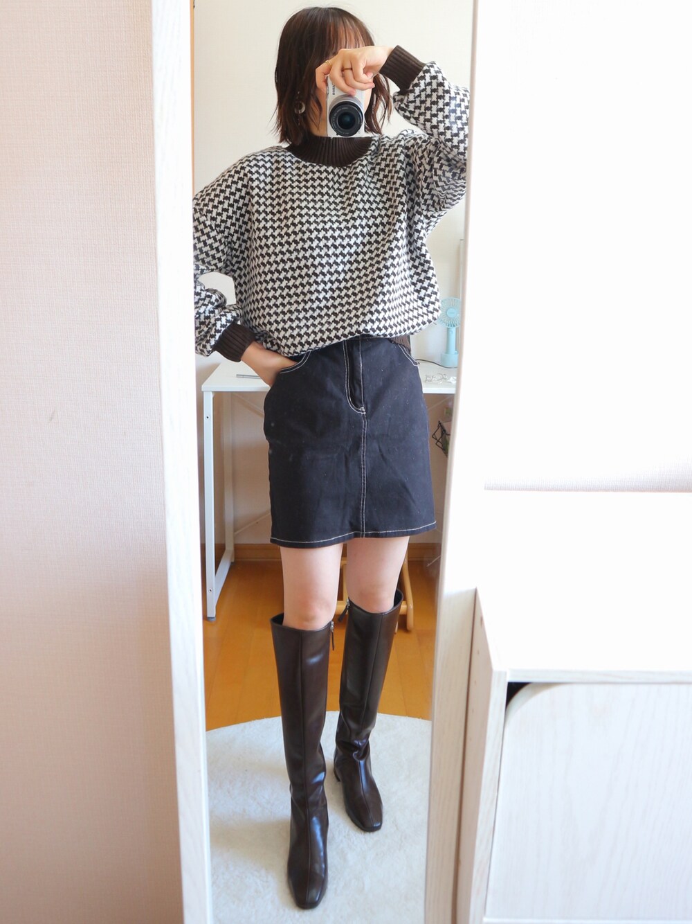 このコーデめちゃくちゃお気に入り❤️ 新しいロングブーツ🍎 インスタでRiLiと検索してもらえれば購入可能です😳めちゃくちゃスタイル良く見えて素敵!! このニットもめちゃくちゃ可愛い😊