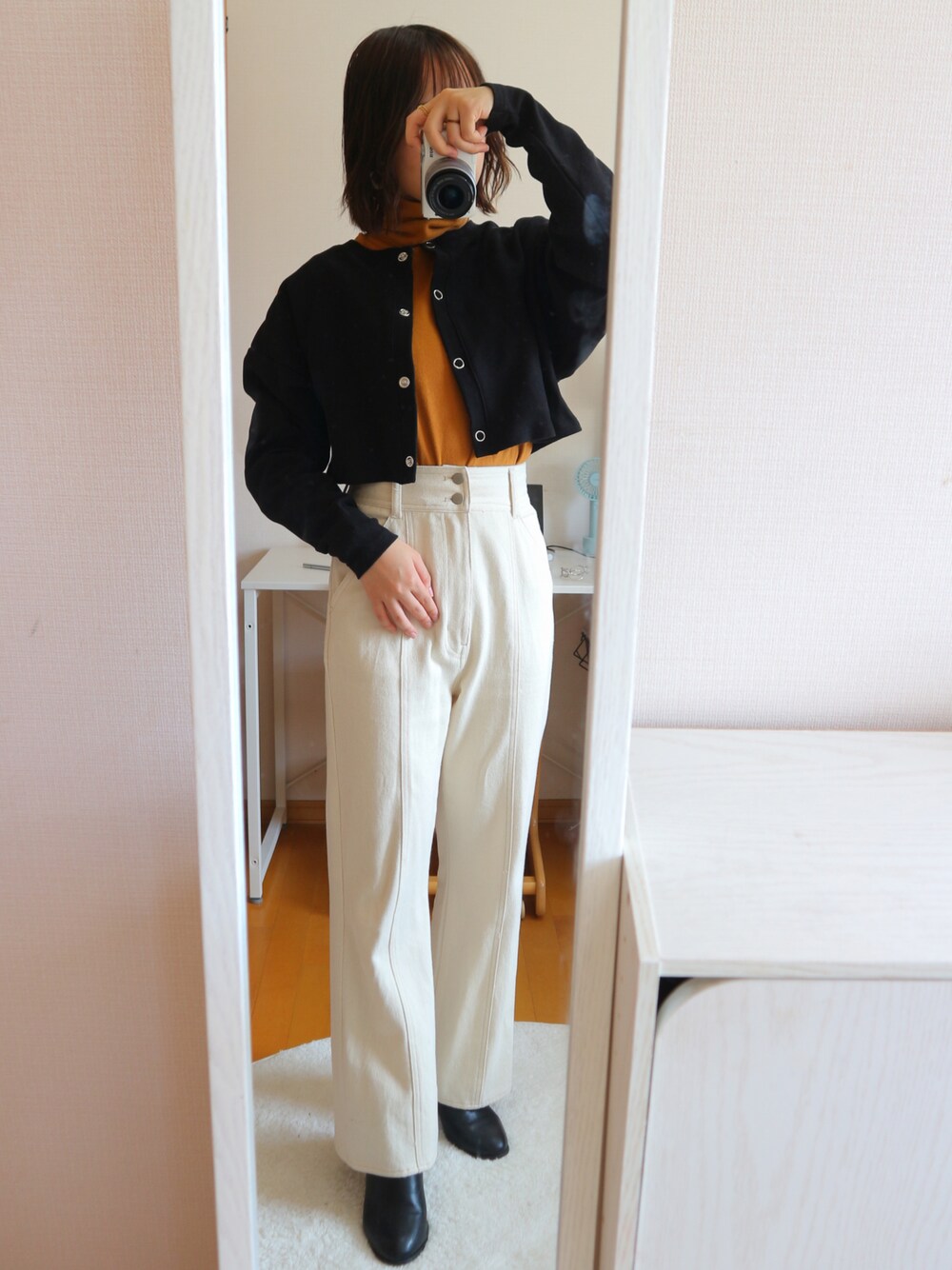以前の投稿で中に緑のニットきてたけど、オレンジも秋らしさを感じれてめちゃくちゃ可愛いしGood👍❤️ 落ち着いた印象になるから大人っぽくみえる!!