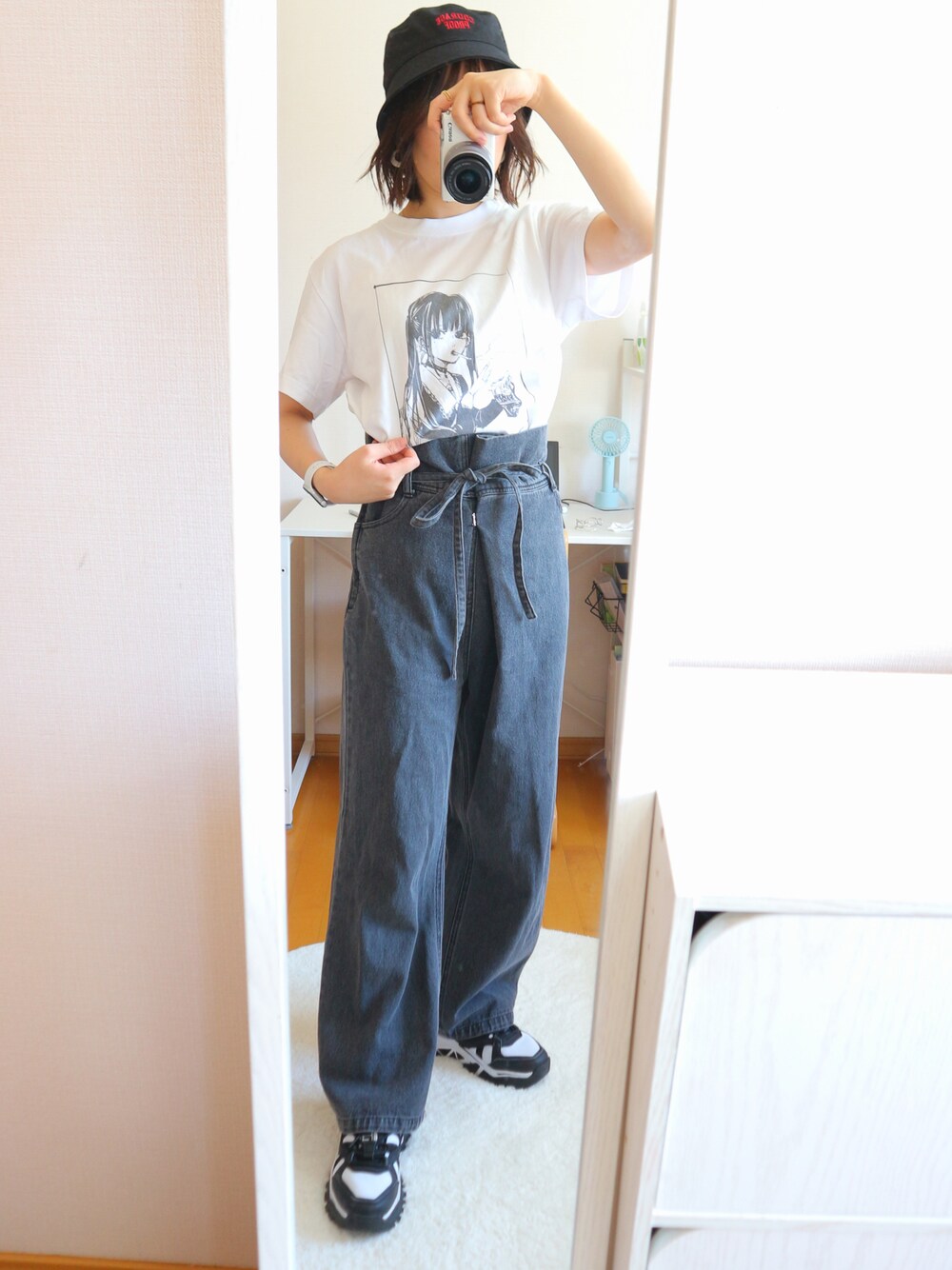 トップスは明日、私は誰かのカノジョのTシャツ!Twitterで購入しました!! 「をのひなお」さんのTwitterのプロフィールから購入できます🥺❤️👍 kasutaneのデニムも少し普通のデニムとは違うくてオシャレ✨デニム好きにはたまらない🍎 靴は私の愛してやまない元ZOCの香椎かてぃちゃんとFILAがコラボした靴😳❤️めちゃくちゃ可愛いくて履き心地も最高!