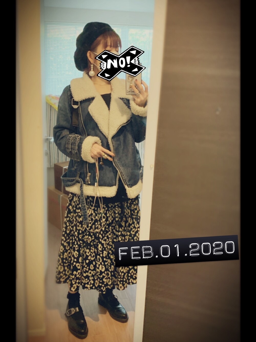 もかちーののその他アウター「J1818 デニム×ボアダブルブレストジャケット」を使ったコーディネート
