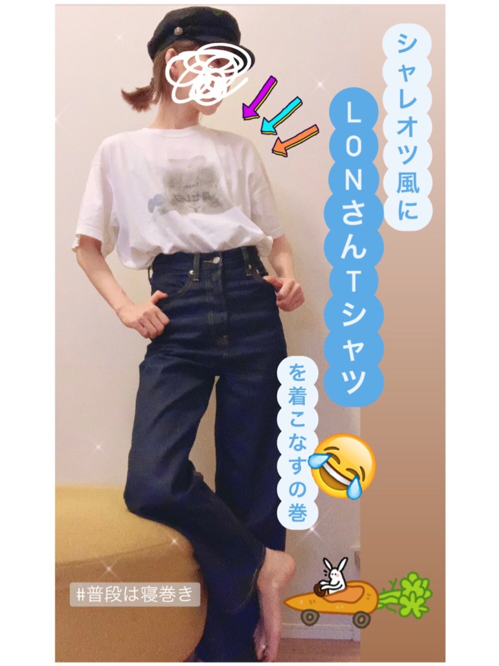 我が家の【挟まりうさぎ】のLONさんTシャツを作ったので、お洒落風に着てみました!普段は寝巻きです笑 あと久しぶりにとってもラインの綺麗なデニムに一目惚れ!年中着れそうです🍀 🐰のインスタはプロフから飛べます❣️