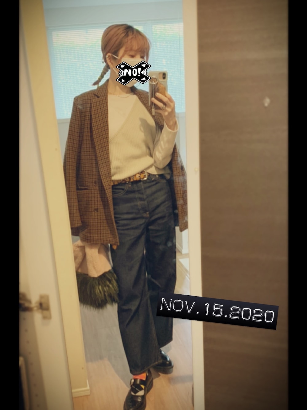 秋だね❤️ チェックにライダースとか、このくらいのジャケットですむ季節が一番好き❤️
