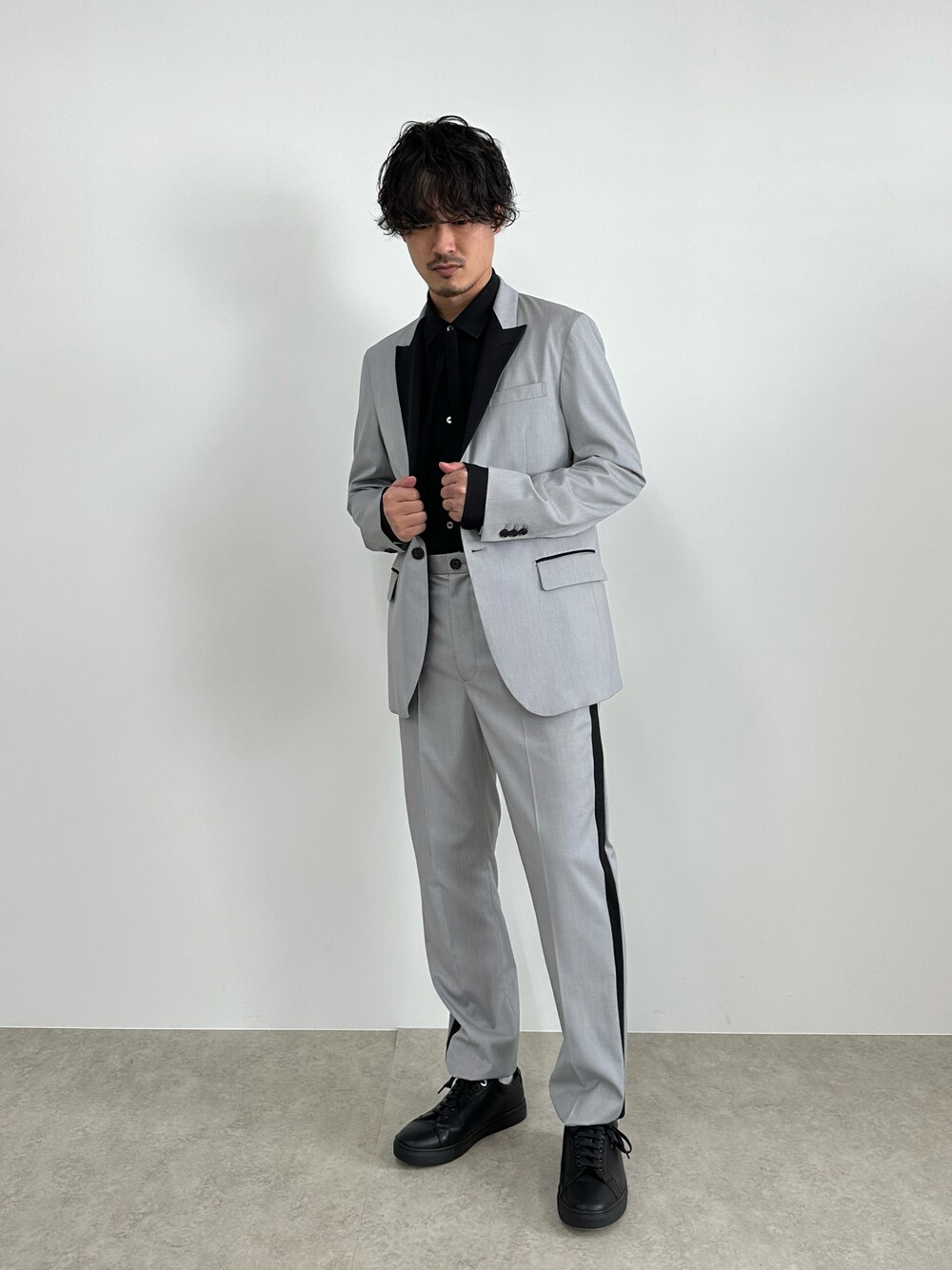 LOVELESS MEN(LOVELESS 本社)のテーラードジャケット「サテンコンビ ピークドジャケット」を使ったコーディネート