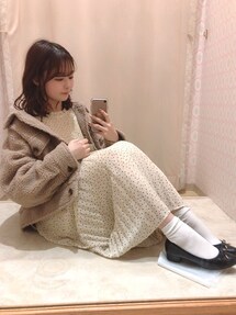 かわの くみこのニット/セーター「ゆるふわVネックニットチュニック *」を使ったコーディネート