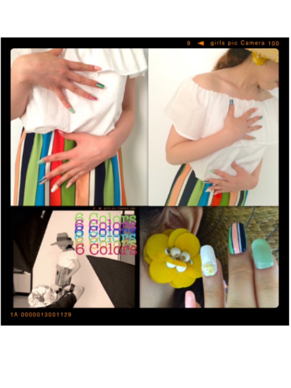 友人ブランドのワンピース 白のオフショルダーにヴィンテージのプリントスカートが可愛い💖 フランスのアンティークピアスも素敵です。 ネイルはワンピースに合わせてデザインしました💅🏻✨