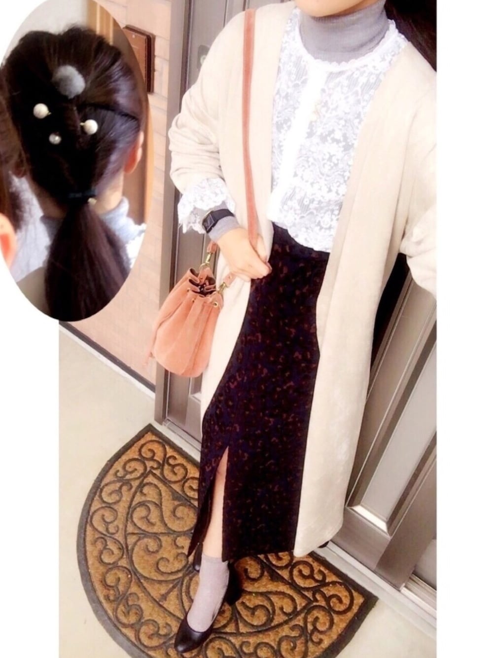 本日のコーデです* いつもいいね、save、コメントいただきありがとうございます😊🙌🙌 タートルネックはユニクロ* 得意の…ホワイト、グレー、モカの3色持ち😂✨ ここからは見えにくいけど… ヘアゴムはAneMone ゴールドのバングル ローリーズファーム ネックレスはおばあちゃんからのもらいもの スカートの柄がうまく撮れてよかった😂💖💖