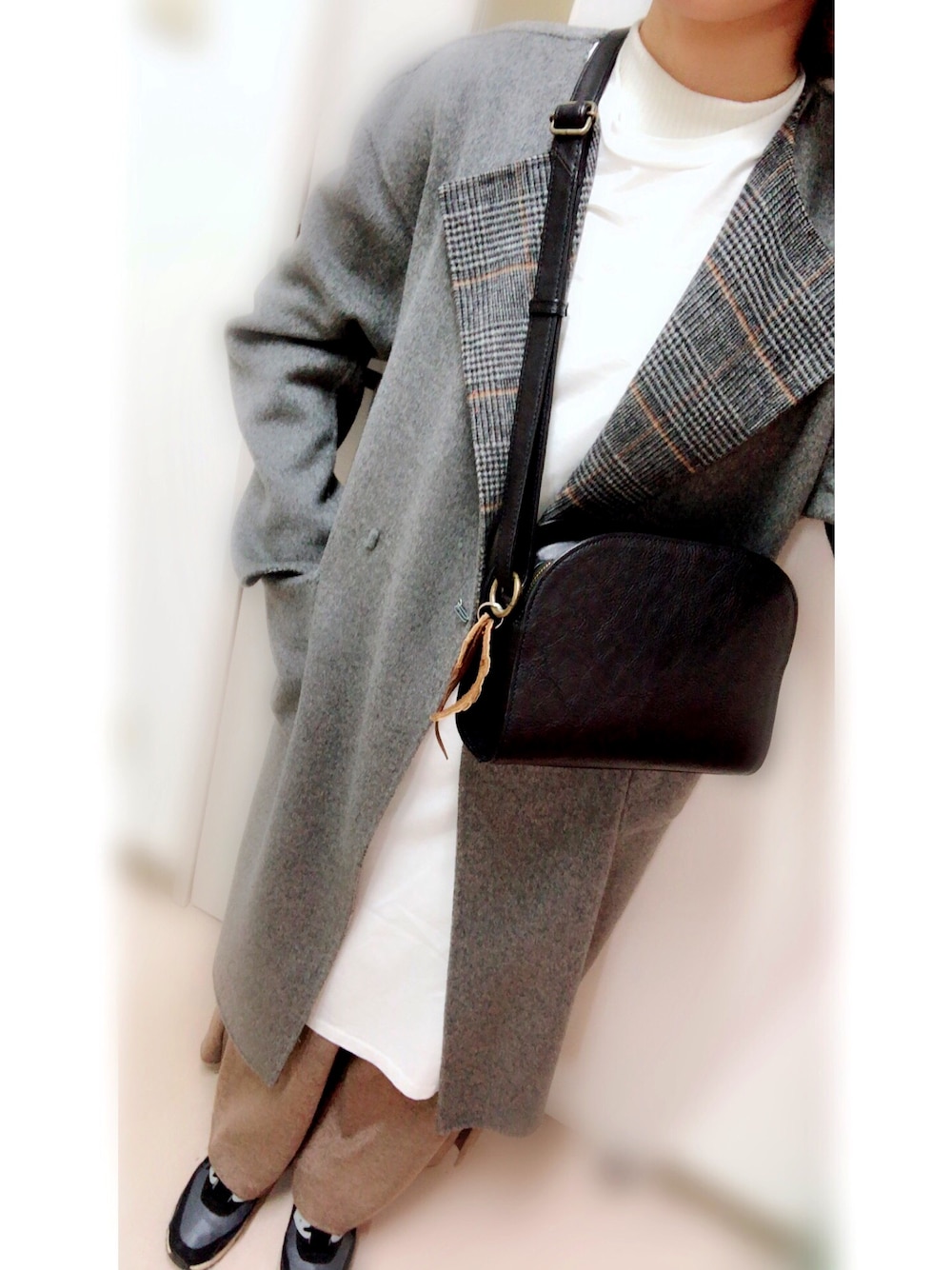 きれい目ワンピにきれい目アウター パンツだけゆるーい感じで😊✨ やっぱわたしはきれい目より緩めが好き笑