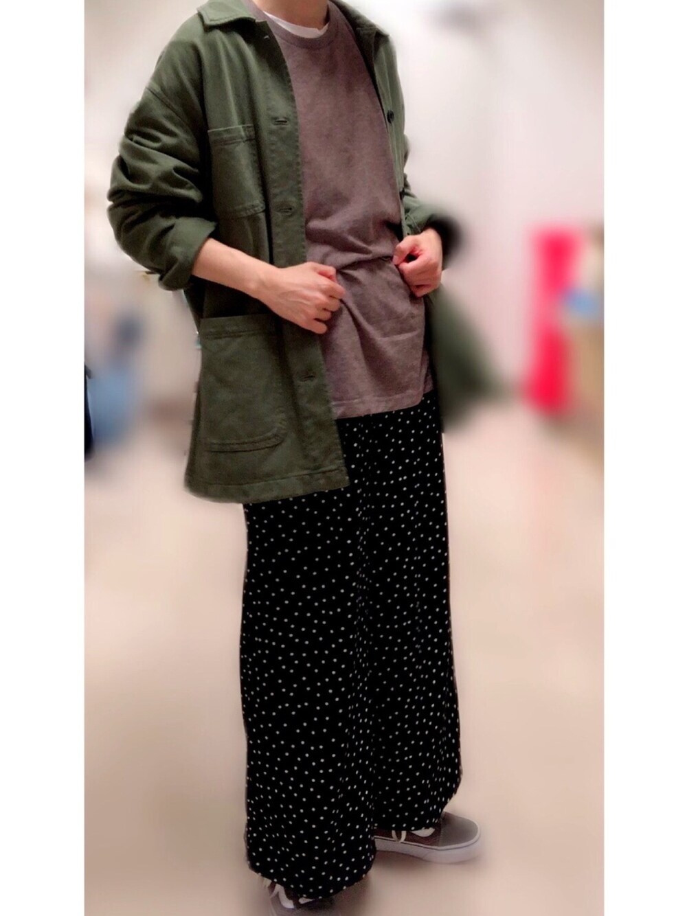 ベルト見えないですね😂 今日まで寒い予報🥶 久しぶりにドット柄をチョイス🧐