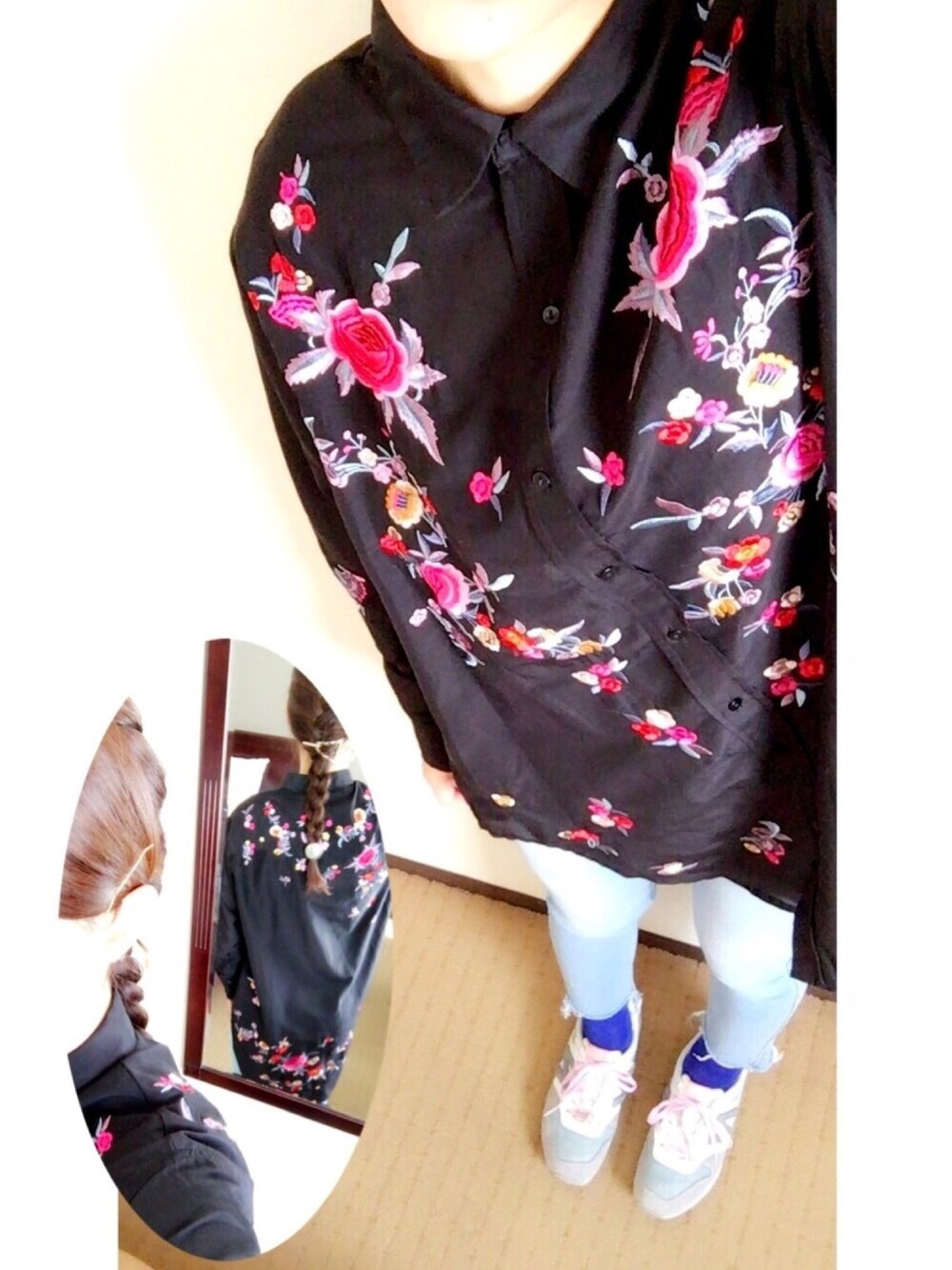 やまちゃん𓃹のシャツ/ブラウス「フラワー刺繍シャツ」を使ったコーディネート
