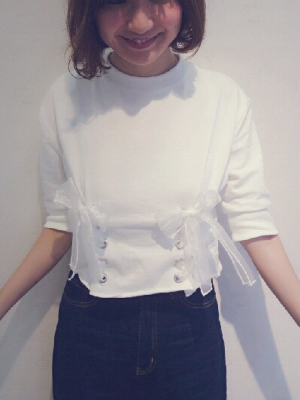 Love's by key.のトップス「Lace-up sweat tops」を使ったコーディネート
