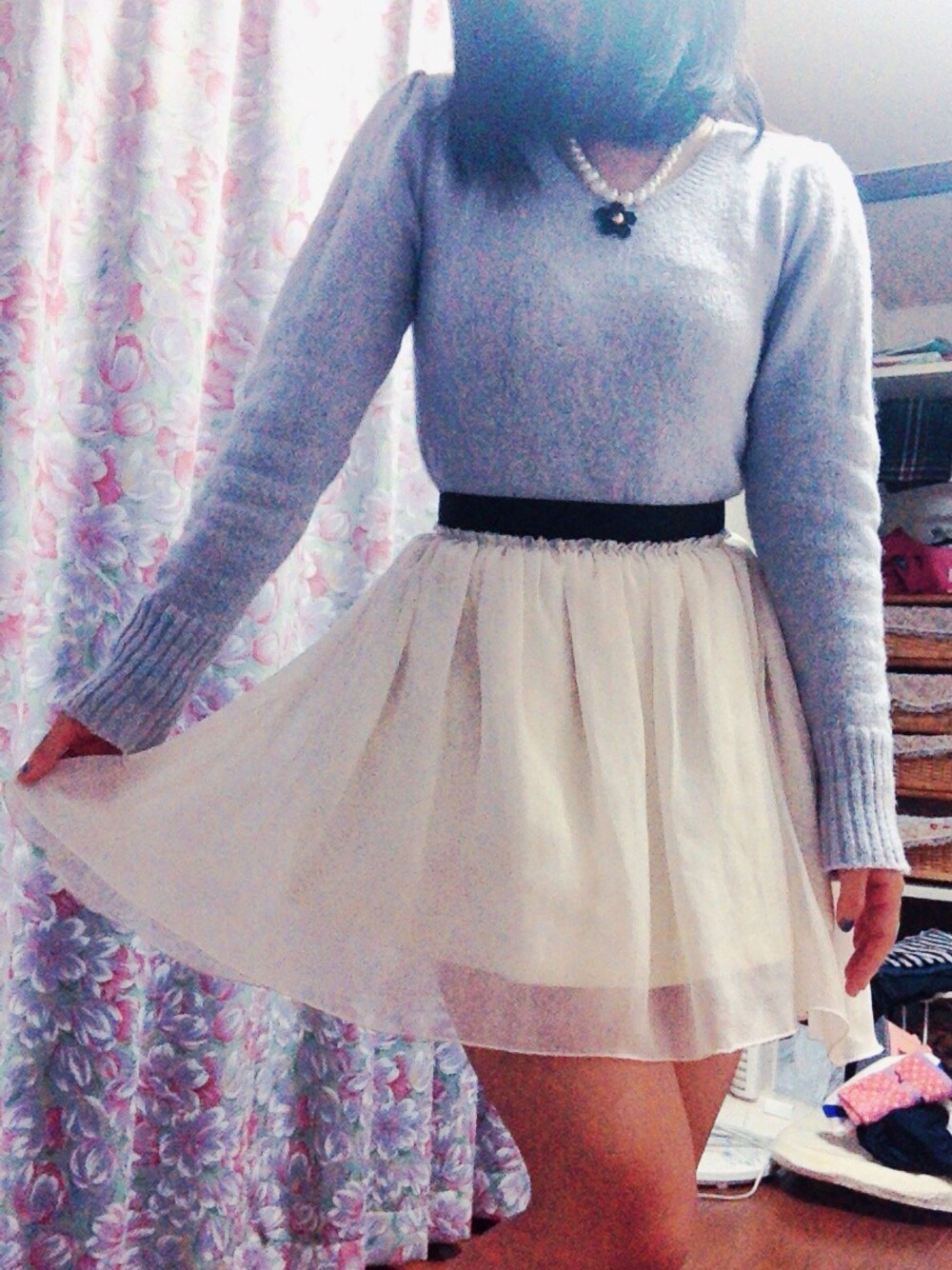 私なりのガーリーコーデです♡ うすーいearthのニットとGUのチュールスカートとを合わせました‼︎ 靴下はホワイトのヒョウ柄ぽい靴下を合わせました♪♪