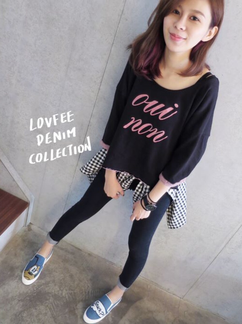 LOVFEEのTシャツ/カットソー「oui non草寫印花背挖洞上衣」を使ったコーディネート