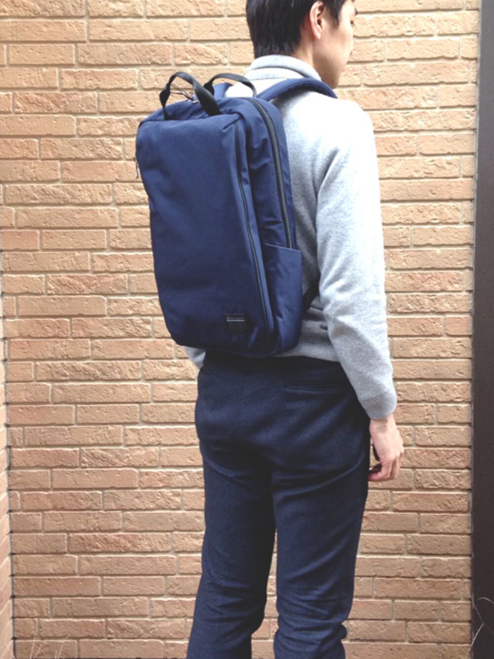 グレー系のバックパック/リュックを着用したメンズの冬コーディネートの1枚目の写真