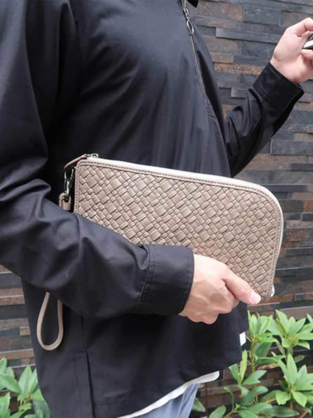 ロワードのクラッチバッグ「ピーアイディー【PID】レザークラッチバッグ」を使ったコーディネート