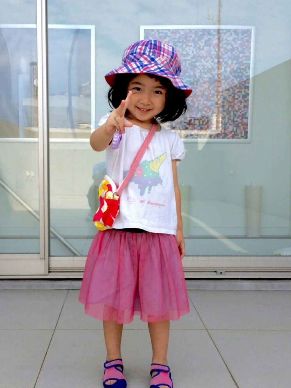 4歳の娘を、女の子らしくピンク主体でコーディネート。 ロクパーのキッズは、数年前のビームス限定コラボでレア。 自邸屋上にて撮影。