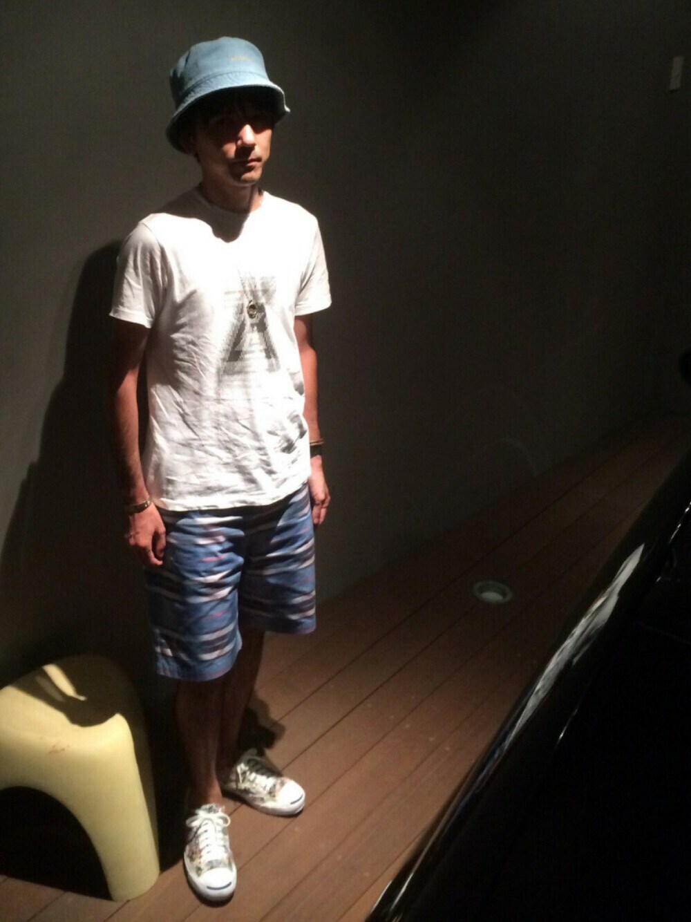 アンリアレイジ2012AW「TIME」中心のコーディネート。 時間のズレを表現したデザイン。 写真がブレてる訳じゃありません、笑。 自邸ガレージにて撮影。