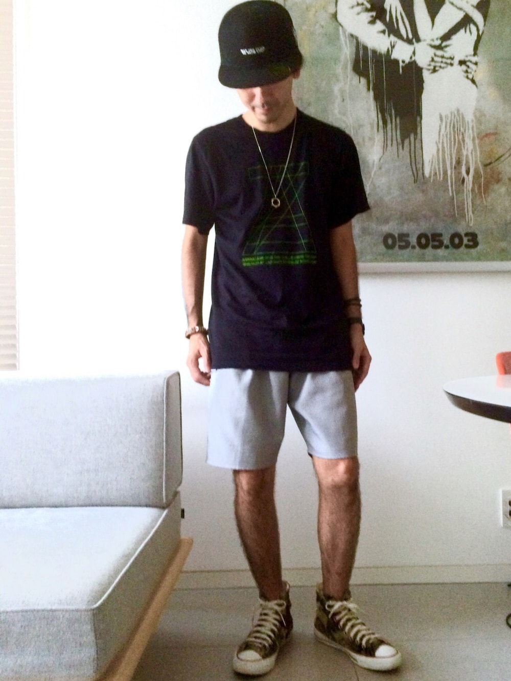 鹿児島はまだ真夏の気候ですが、そろそろ夏の格好はこれで終わりにしたいです。 アンリアレイジ2013SS「BONE」中心のコーディネート。 自邸リビングダイニングにて撮影。
