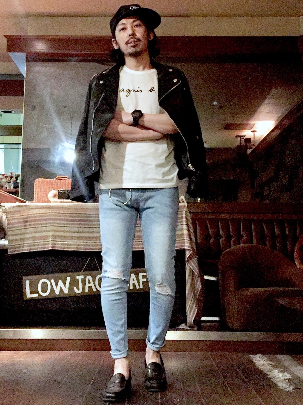 はーい皆んなお疲れさん🙌 まさあきさんやで😉 皆、秋物薄手アウターの準備はええかぁ?😀✨ 今日のコーデは黒のダブルライダースジャケットをアニエスTシャツとアイスブルーのダメージスキニーデニムと合わせたシンプル爽やかコーデ😀👍✨ 昨日のコーデがキャメルライダースで ブラックのダメージスキニーデニムやろ? 実は? 今日のライダースと昨日のライダースは色違いの同じもので? 今日のダメージスキニーデニムと?昨日のダメージスキニーデニムも? 同じものの色違いやねん😀🙌✨ カラーが変わるとここまで変わる!て見比べられるし、ぜひ昨日のコーデも見てみてよー😀👍✨ 昨日、今日、と両方使用しとるロウジャックデザインオリジナルメッシュキャップは、プロフからリンクで飛べる通販ページで買えるからねー😀🙌✨ 今だけ送料無料なうえに?BASEのアプリから買うと?初めての人は、初めて割?みたいなんで?さらに安くなるみたいやし、このチャンスにぜひぜひー😎🙌✨ じゃー、今日はこの辺でドロンやで☠️ インスタもよろしくー😎🙌✨ Instagram lowjack1985 さぁ皆んな、今日もまさあきさんに LETS絡みニケーションやで😀 はじめましてちゃんも、コーデ見る専門家ちゃんも、遠慮はいらんのやでー😎🙌✨