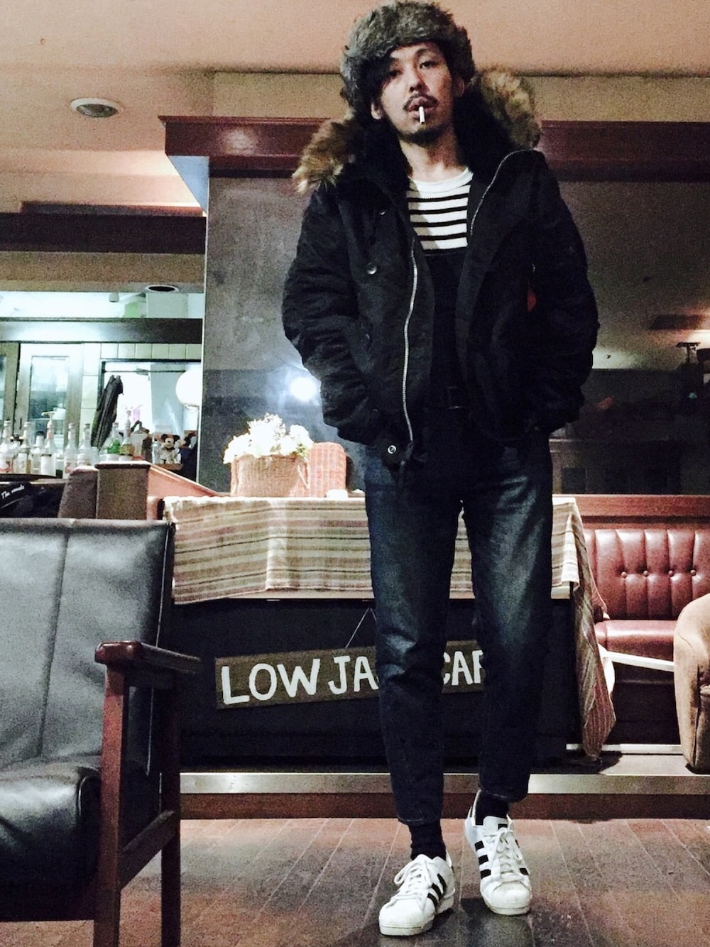 はーい皆んなお疲れさん🙌 まさあきさんやで😉 まず、お待たせしてたロウジャックキャップ、今日、この後、20時から10個だけ再販するよー😎🙌✨ 10個しかないからなー😬🙌💧 お届けは1月中旬なー😀👍✨ んで、 今日のコーデは冬のオーバオールコーデ😎🙌✨ オーバーオールはアーバンリサーチサニーレーベルのレディースで裾が9部に来るとこが野暮ったくならずお気に入り✨ アルファのN-2BはタイトモデルのXLと言う選択✨ オーバーサイズながら、タイトモデルやからスタイリッシュにまとまるな😀✨ 頭にはWEGOのフライトキャップ(パイロットキャップ)✨ N-2Bのファー部分との相性も良し!✨ ファーの色が微妙に違うものどうしを組み合わせる時は、変‼️と思わずに立体感を出すチャンス😎🙌✨ 周りのアイテムも微妙に色が違う同系色(今回は素材違いの黒からダークネイビー)を持ってくれば、あたかもそれが計算に見えて、立体感が出るからな😀👍✨✨✨ て事で、今日はこの辺でドロン☠️ 宣伝 まさあきさんがデザインをつとめてる LOW JACK DESIGN のオリジナルアイテム が絶賛発売中やで😀✨ メッシュキャップ 3900円【本日20時再販開始】 Lサイズトート 3900円【残りわずか】 サコッシュ 3900円【現在売り切れ中】 トートはめちゃ大きいし、マチもあるから、たーくさん荷物入るでー😀🙌✨ サコッシュなんかは?子供ちゃんがトートバッグみたいに持っても可愛いんちゃうかな??😀✨✨✨ はじめましての人も、見る専の人も、遠慮無く購入してくださいましー😀🙌✨✨✨ WEARのプロフからリンクで販売ページに飛べるからねー😀🙌✨✨✨