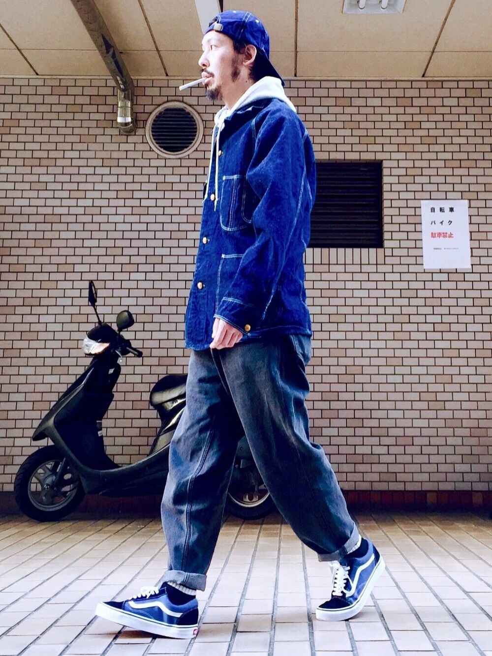 はーい皆んなお疲れさん😀🙌 まさあきさんやで😉✨ みんな、いつもありがとうね😎👍✨ ついさっきまさあきさんオリジナルブランドから新発売の短パンが出たから、良かったらプロフのリンクから覗いて見てねー😎🙏✨ んで、 今日のコーデはデニムのカバーオールとデニムのバルーンパンツをあわせた、アメカジミックススケーター風コーデ😎👍✨ デニムのカバーオール ブランドは オアスロウ ( orSlow ) 😎🙌✨ デニムカバーオールはオアスロウのアイコン的アイテムなんやけど、まぁ、デニムへの愛が半端無いのよ、このオアスロウは😱 とくにカバーオールへの情熱こだわりがヤバい😱✨ ブランドを代表するアイテムやからな😎 カバーオールの種類を 40s 50s と年代別に分けてるあたりもニクい演出😎👍✨ カバーオールは、若い頃にカーハート(流行ったからなぁ)とダルチザンのを所有してたんやけど、まぁ、所有した中でしか比べられへんけども、オアスロウがダントツカッコエエな😂 ジャーナルスタンダードレリュームのキャップとも色味的に相性が良いね😎👍✨ バルーンパンツはフリークスストア😎👍✨ 求めやすい良心的価格、さらにシルエットが美しい😎🙌✨