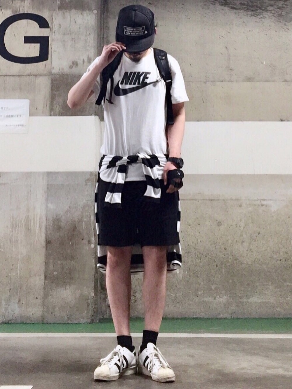 はーい皆んなお疲れさん🙌 まさあきさんやで😉✨ 令和もよろしくー😉✨ コメ欄が閉じてる日はインスタのコメやDMで気軽に絡んでねー😎👍✨ はじめましてちゃんも遠慮無く😎👍✨ PR、お仕事、のご依頼もインスタDMでよろしくです✨ さぁ 今日のコーデは ナイキのスウォッシュマークがシンプルで何にでも合う フューチュラアイコンTシャツを使用したモノトーンストリートカジュアル😎👍✨ まさあきさんは身長169センチで XLを着用してこのサイズ感やから、以外と小さめなTシャツやし、欲しくなった人はサイズ要確認してなー😎👍✨ まさあきさんオリジナルブランド LOW JACK DESIGN のメッシュキャップ(プロフのリンクで購入可)との相性もグンバツやな😀✨ 腰巻きにZOZOボーダーロンTを巻いてみたけどモノトーンコーデの腰巻きにボーダー持って来るのも新鮮な感じ😎👍✨ スニーカーもモノトーンに合わせてスーパースター80s😎👍✨ プーマのトレーニンググローブも付けてるから、ナイキ、アディダス、プーマ、とスポーツブランド勢揃いやな😎🙌✨笑