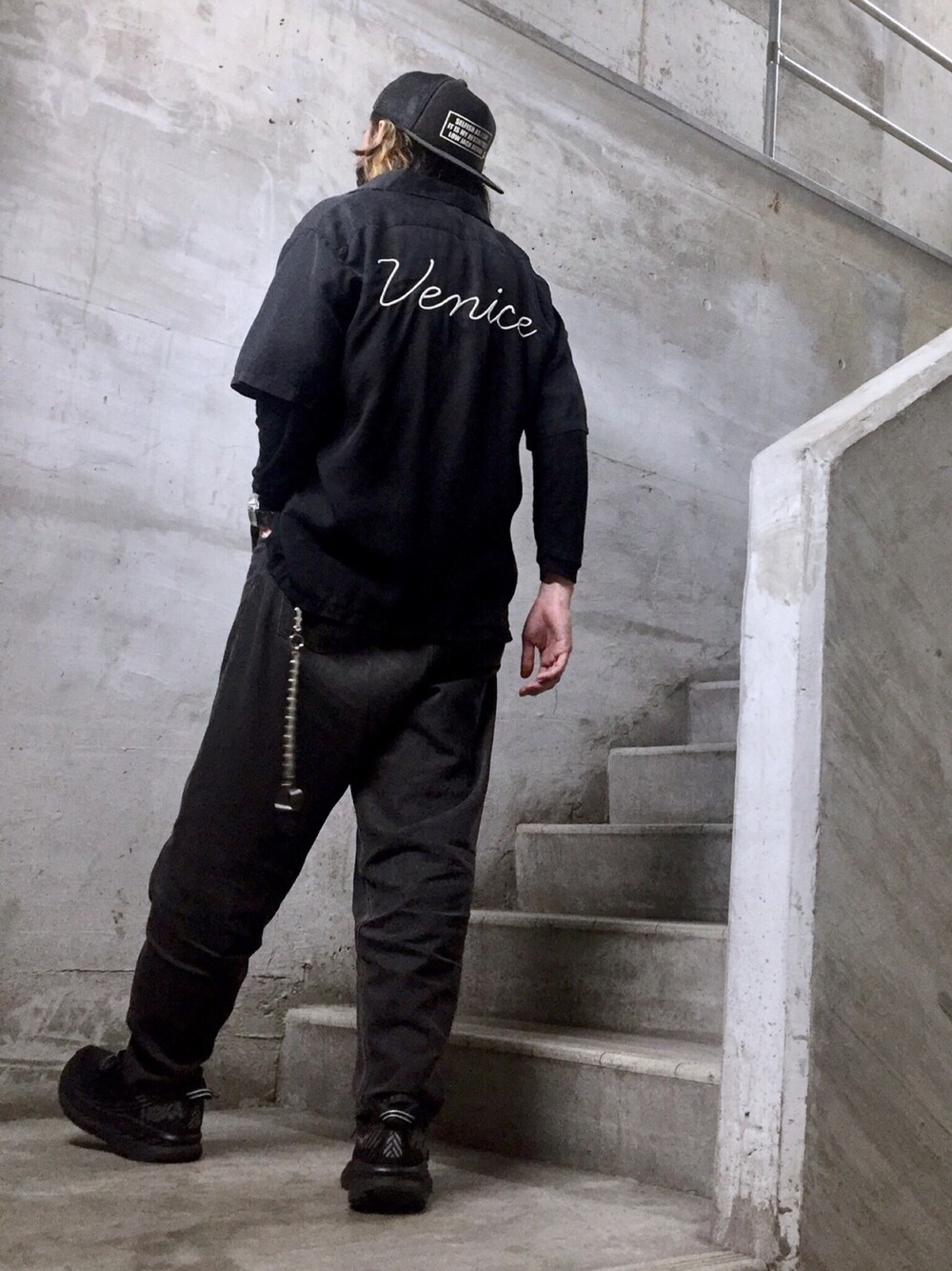 はーい皆んなお疲れさん🙌 まさあきさんやで😉✨ いいね、お気に入り、フォロー、そしてフォルダーイン、みんないつもありがとうねー😎🙏✨ コメ欄が閉じてる日はインスタのコメやDMで気軽に絡んでねー😎👍✨ はじめましてちゃんも遠慮無く😎👍✨ PR、お仕事、のご依頼もインスタDMでよろしくです✨ さぁ 今日のコーデは まさあきさんオリジナルブランドのシガレットボックスロゴキャップ(プロフのリンクで購入可)をボーリングシャツとバルーンデニムで合わせた ルードMIXスケーターブラックコーデ😎🙏✨ 動きやすいコーデながら、ルード感せっかくあるし、ウォレットチェーン(これ又まさあきさんオリジナルブランド)も忘れずに😎👍✨