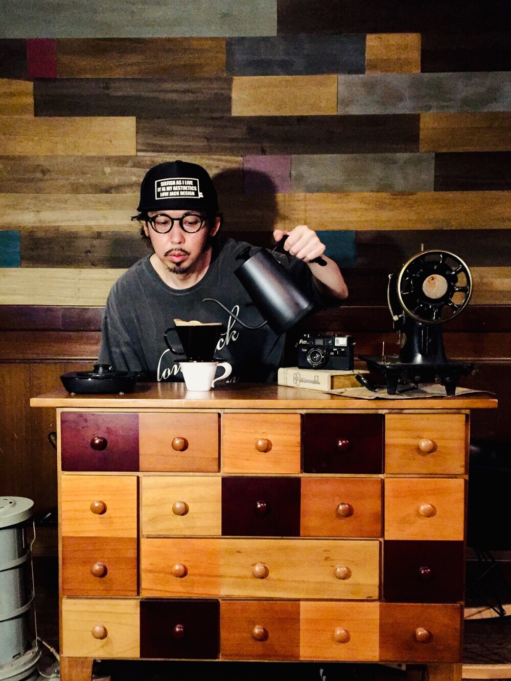 はーい皆んなお疲れさん🙌 まさあきさんやで😉✨ いいね、お気に入り、フォロー、そしてフォルダーイン、みんないつもありがとうねー😎🙏✨ コメ欄が閉じてる日はインスタのコメやDMで気軽に絡んでねー😎👍✨ はじめましてちゃんも遠慮無く😎👍✨ PR、お仕事、のご依頼もインスタDMでよろしくです✨ 今日のコーデはビンテージ家具やインテリアに合わせてまさあきさんオリジナルブランドのビンテージtシャツ 😎✨ 同じくオリジナルブランドのキャップは プロフにあるリンクで購入出来まーす✨ FUJICAのカメラ、MITSUBISHIのミシン、Aladdinのストーブ、は全てウン10年前のジャンク品で完全なるインテリア😎 ジャンク品のレトロ家電は動品よりかなりかなり安く買えるし、インテリアと割り切るならオススメ😎👍✨ コロナのせいで自宅待機も退屈やろけど、こんな時やからこそお家で出来る新しい趣味とか?作ってる人も多いよな😀✨ 暇を持て余した今やからこそ、珈琲を本格的に始めてみるのはどうやろか?😎 お洒落な珈琲器具や、美味しい珈琲豆、ネットでも買えるしなー😀👍✨ ちなみに、まさあきさんが自宅でもカフェでも現在使用してるドリップ用のケトルが安くて、お洒落で、カッコいいのよー😎🙏✨ しかも安い!😱✨ コストパフォーマンス半端無い😂🙏✨ 山善のYKG-C800 てやつなんやけどまず見た目の艶消しブラックがクールでカッコ良すぎな😎👍✨ YKG-C800は、100℃の沸騰はもちろん、1℃刻みで60〜100℃の細かな温度設定ができ、飲み物に適した温度が選びやすい6段階の温度もプリセットされている電気ケトルやで😎 珈琲を美味しくする湯温、お茶(紅茶、日本茶)を美味しくする湯温、はそれぞれ違うし、これはありがたいで😎🙏✨赤ちゃん用のミルクなんかを沸かすのも簡単な訳よ😀 温度設定はタッチスイッチをポンポンと触れるだけと簡単😎 しかもハンドドリップに有用な、細くお湯が注げて湯量も安定しやすい、細口のノズルが採用されているで😎 電源プレートには現代らしい仕掛けがあって電源を入れたら漆黒の樹脂製プレートに、操作が一目瞭然のタッチ式スイッチがLEDバックライトで浮かび上がってカッコいい😎🙏✨ ギミック的な仕組みが盛り込まれつつも、電源プレートを壁側に寄せやすいように、コードの出し方に工夫があったり、底のシリコンで安定した設置ができたりと、使い手への配慮も忘れられてない点もグッド👍✨ 価格はオープン価格やけどネットで検索したら6000円くらいで買えるんちゃうかなー? 普通のドリップケトルでもウン千円したりするのが普通やし、この機能性とお洒落さでこの価格はマジでスゴイ😎👍✨ みんなもぜひネットで探したりして購入してみてー😎👍✨ お揃い買いましたー!とかコメントでぜひ教えてねー😎👍✨