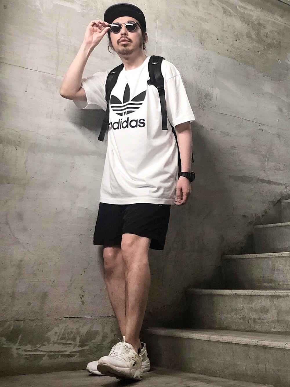 はーい皆んなお疲れさん🙌 まさあきさんやで😉✨ いいね、お気に入り、フォロー、そしてフォルダーイン、みんないつもありがとうねー😎🙏✨ コメ欄が閉じてる日はインスタのコメやDMで気軽に絡んでねー😎👍✨ はじめましてちゃんも遠慮無く😎👍✨ PR、お仕事、のご依頼もインスタDMでよろしくです✨ 今日のコーデは最近お気に入りのワークマン水陸両用パンツとアディダスのトレフォイルtを合わせたストリートカジュアル😎🙏✨ ワークマンの水陸両用パンツはその名の通り 水着としても使えるナイロン製ハーフパンツ😎 全部で5つある収納ポケットもそれぞれがかなり拘った作りで、パンツ自体のシルエットもかなり良い感じ😎👍 お値段はなんと1500円😱 機能性もシルエットも1500円はありえへん出来✨ スニーカーはプーマ のディスクブレイズやけど、プーマ とグラファーズロックのコラボ物😎👍✨