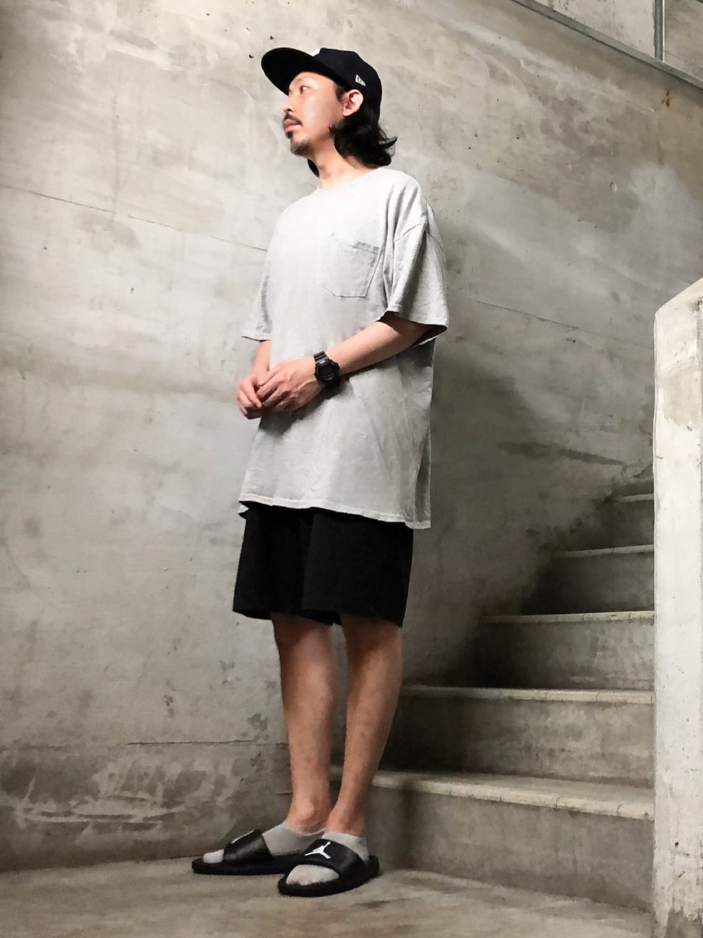 はーい皆んなお疲れさん🙌 まさあきさんやで😉✨ いいね、お気に入り、フォロー、そしてフォルダーイン、みんないつもありがとうねー😎🙏✨ コメ欄が閉じてる日はインスタのコメやDMで気軽に絡んでねー😎👍✨ はじめましてちゃんも遠慮無く😎👍✨ PR、お仕事、のご依頼もインスタDMでよろしくです✨ 今日のコーデは unrelaxing スーパーオーバーサイズビッグTシャツ と シャワーサンダル JORDAN BREAK SLIDE ジョーダン ブレイク スライド を使用したシンプルな夏ストリートコーデ😎🙏✨ 無地tシャツはホンマにブランドによってサイズ間はバラバラ🤔 無地tで有名なとこやとギルダンXXLサイズと今日着用の アンリラクシングのSサイズはほぼ同じサイズ感😎🙏✨ アンリラクシングがいかにオーバーサイズビッグシルエットを推しているブランドか?良く解る代表的なアイテム✨ シンプルイズベスト✨ シャワーサンダルもジョーダンフライトマークのワンポイントが効いてて良いね😎👍✨