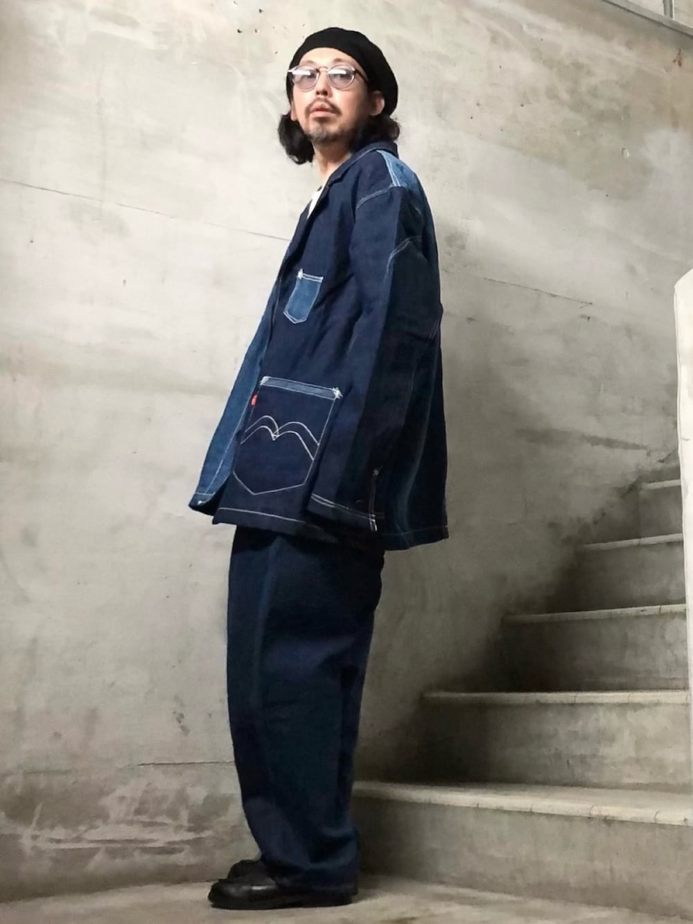 いいね、お気に入り、フォロー、そしてフォルダーイン、みんないつもありがとう😎🙏✨ コメ欄が閉じてる日はインスタのコメやDMで気軽に絡んでねー😎👍✨ はじめましてちゃんも遠慮無く😎👍✨ PR、お仕事、のご依頼もインスタDMでよろしくです✨ 今日のコーデは Levi's(R)RED DENIM SACK COAT KYANITE と Levi's(R) RED CROPPED WIDE LEG KYANITE を上下セットアップで使用した デニデニコーデ😎🙏✨ JUNYA WATANABE COMME des GARÇONS とのコラボも記憶に新しいリーバイスの高級プレミアムライン 新生リーバイスレッド☝️ その21aw最新作の中でも1番の注目度とモード性の高いサックコートジャケットでキメるデニムセットアップ「kyanite」😎🙏✨ プレミアムラインにふさわしく イタリアの高級デニムファブリック、キャンディアーニ社のファブリックが贅沢に使用されてるよ😎🙏✨ ジャケットパンツともにクレイジーパターンみたく濃さ違う2色のデニムが美しく配置されててデザイン性の高さが魅力😎🙏✨ 超オススメアイテム✨ 今回はビームスのベレー帽とクレマンのレザーシューズで大人のモードmixアメカジコーデで😎🙏✨