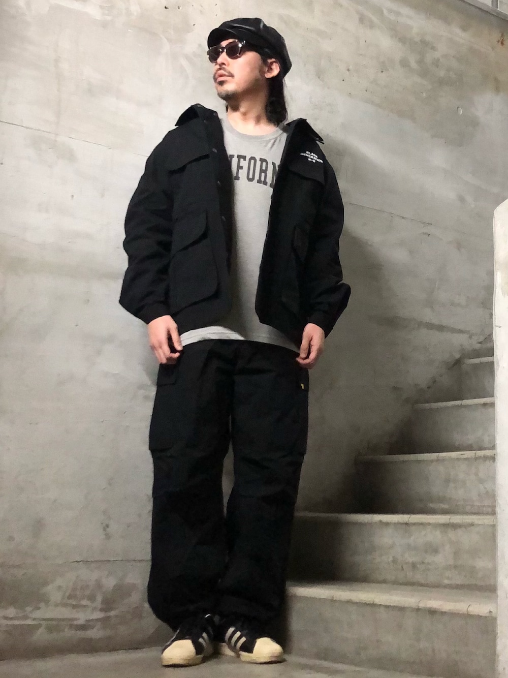 MasaakiOoueのミリタリージャケット「RIPSTOP MILITARY JACKET / リップストップ ミリタリージャケット」を使ったコーディネート