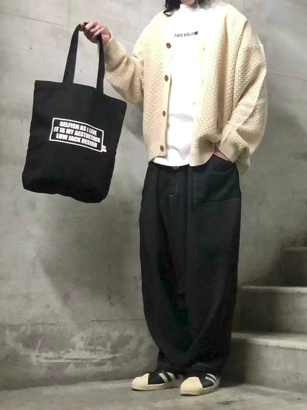 いいね、お気に入り、フォロー、そしてフォルダーイン、みんないつもありがとう🙏 コメ欄やインスタのコメ、DMで気軽に絡んでね🤝 PR、お仕事、のご依頼もインスタDMでよろしくです✨ 今日のコーデは ○LOW JACK DESIGN シガレットボックスロゴトートバッグ ブラック M ○ WONDER WONDER - cafe holic - ロゴ刺繍ビッグT ○ 【GLOSTER/グロスター】クロシェライクカーディガン 透かし編みニット を使用した綺麗目カジュアル😎 マイオリジナルブランド LOW JACK DESIGN のトートバッグは サイズが2種類あるよ☝️ 今回着用のMサイズは男女関係無く使いやすいレギュラーサイズ☝️ 女子にオススメのハンドバッグサイズのSも用意してるよ👍 ZOZOTOWNで絶賛発売中☝️ 「 ロウジャックデザイン 」 でブランド・アイテム、お気に入り登録よろしくです😎🙏 そして、WONDER WONDER - cafe holic - ロゴ刺繍ビッグTは プロデューサーで WEARISTA の Mr.SZK 君の拘りが詰まったこのtシャツ✨ 本当可愛いくて使いやすいよ😎🙏 シンプルがゆえにどんなコーデにも使えるし、生地もしっかり厚みがあってシルエットも今っぽくて良いよ☝️ロゴにマグカップが入ってるのも可愛いし、男女ともに超オススメアイテム✨ Mr.SZK 君 の WONDER WONDER にはこのサンダルの他にもカッコイイアイテムがたくさんあるし、ぜひZOZOTOWN で 「ワンダーワンダー」 検索して見てね😎👍 そして GLOSTER/グロスターの、このカーディガンは 透かし編みがトレンド感抜群☝️ 編み目の大きいアイテムは今すごく流行ってるからねー😎 しかも今ならタイムセール価格でお得に買えちゃう 超オススメアイテム✨