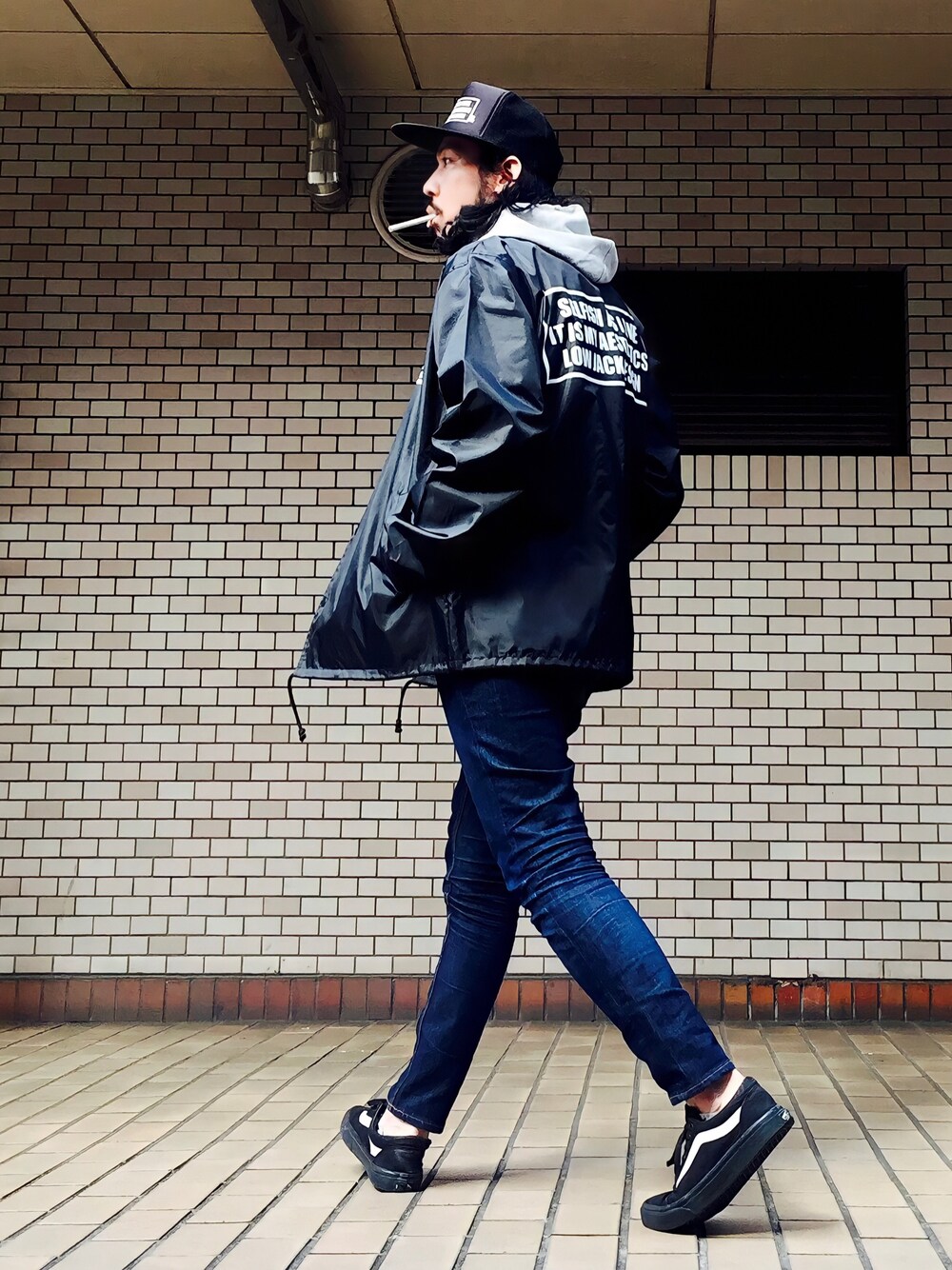 いいね、お気に入り、フォロー、そしてフォルダーイン、みんないつもありがとう🙏 コメ欄やインスタのコメ、DMで気軽に絡んでね🤝 PR、お仕事、のご依頼もインスタDMでよろしくです✨ 今日のコーデはマイオリジナルブランド LOW JACK DESIGN 【プロフのリンク販売ページで購入可能】の シガレットボックスロゴメッシュキャップ とシガレットボックスロゴコーチジャケット を使用したストリートコーデ😎🙏 メッシュキャップは zozo town(完売) じゃなくBASE(プロフリンクから飛べます)久々に再入荷してるんで気になった人はお急ぎ下さいませー😎🙏