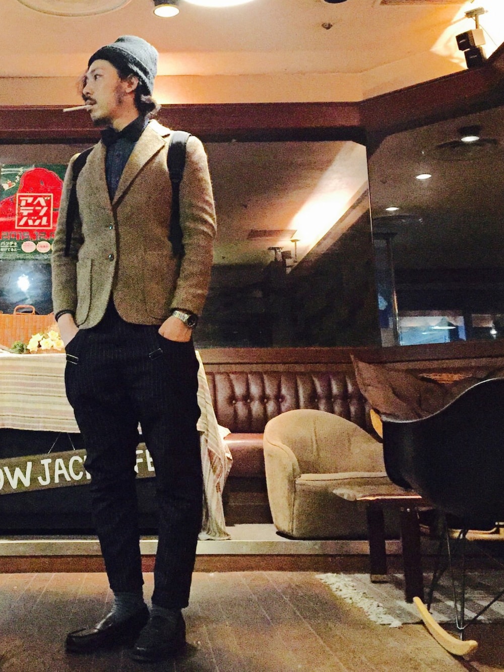 はーい皆んなお疲れさん🙌 まさあきさんやで😉✨ 今日のコーデは、いつかのコーデの帽子変わっただけやないか😬💢やで😉✨ けど、帽子1つでガラッとイメージが変わる事と、ツイードジャケット×ハイウエストサスペンダーパンツの使い勝手の良さを伝えたい訳よ😀✨ 前にも言うたけど、まさあきさんのゴルチェパンツは、太めのストレートやったのを、女子で流行ってたハイウエストサスペンダーパンツみたいにリメイクしてもらったやつやねん😀✨ やから、皆んなは、同じパンツじゃなくても、レディースのサスペンダーパンツを検索したらなんぼでも同じ様な形のん出てくるやろし、それで代用したらええで😀✨ 男子も、デッカいレディースサイズなら履けるわいな😎👍✨ 今日は店も忙しいめやし、店終わった後は音楽行事が待ってるから、おもろい話はお休みで、この辺でドロンするで😑🙌✨笑 さぁ、皆んな、今日もまさあきさんに LETS絡みニケーションやで😀🙌✨ はじめましてちゃんも、コーデ見る専門家ちゃんも、遠慮はいらんからなー😀🙌✨ PS、いつも、いいね、セーブ、コメント、フォロー、ありがとうなー😂💦 皆んなのとこも、後で見に行かせてもらうからねー😎🙌✨