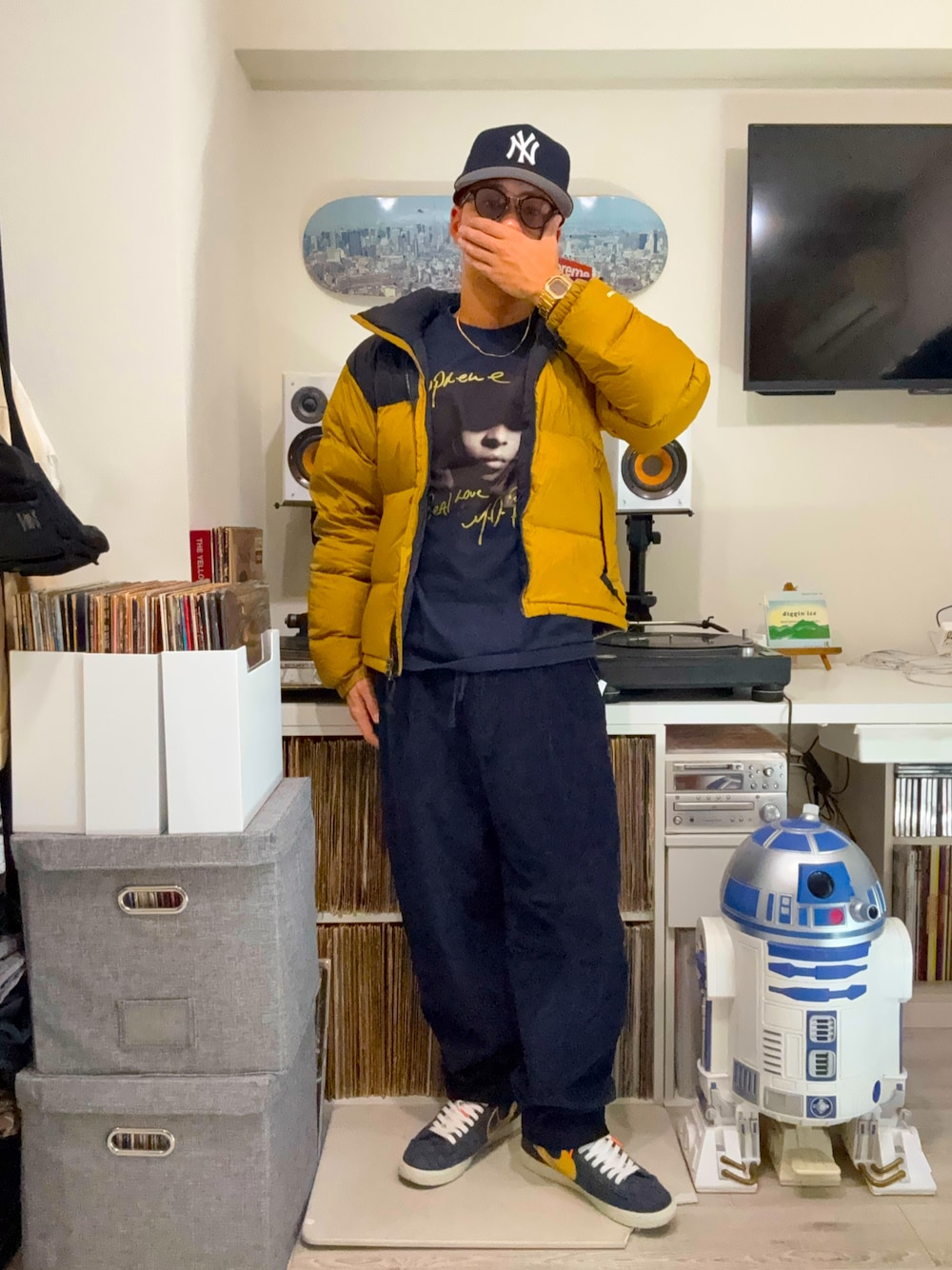 大好きなシンガーMary J. BligeのSupremeコラボのTシャツです。 金色のサインが映えてるので、イエロー系のNuptseと、 BEAMS NIKE BLAZERを合わせてました!