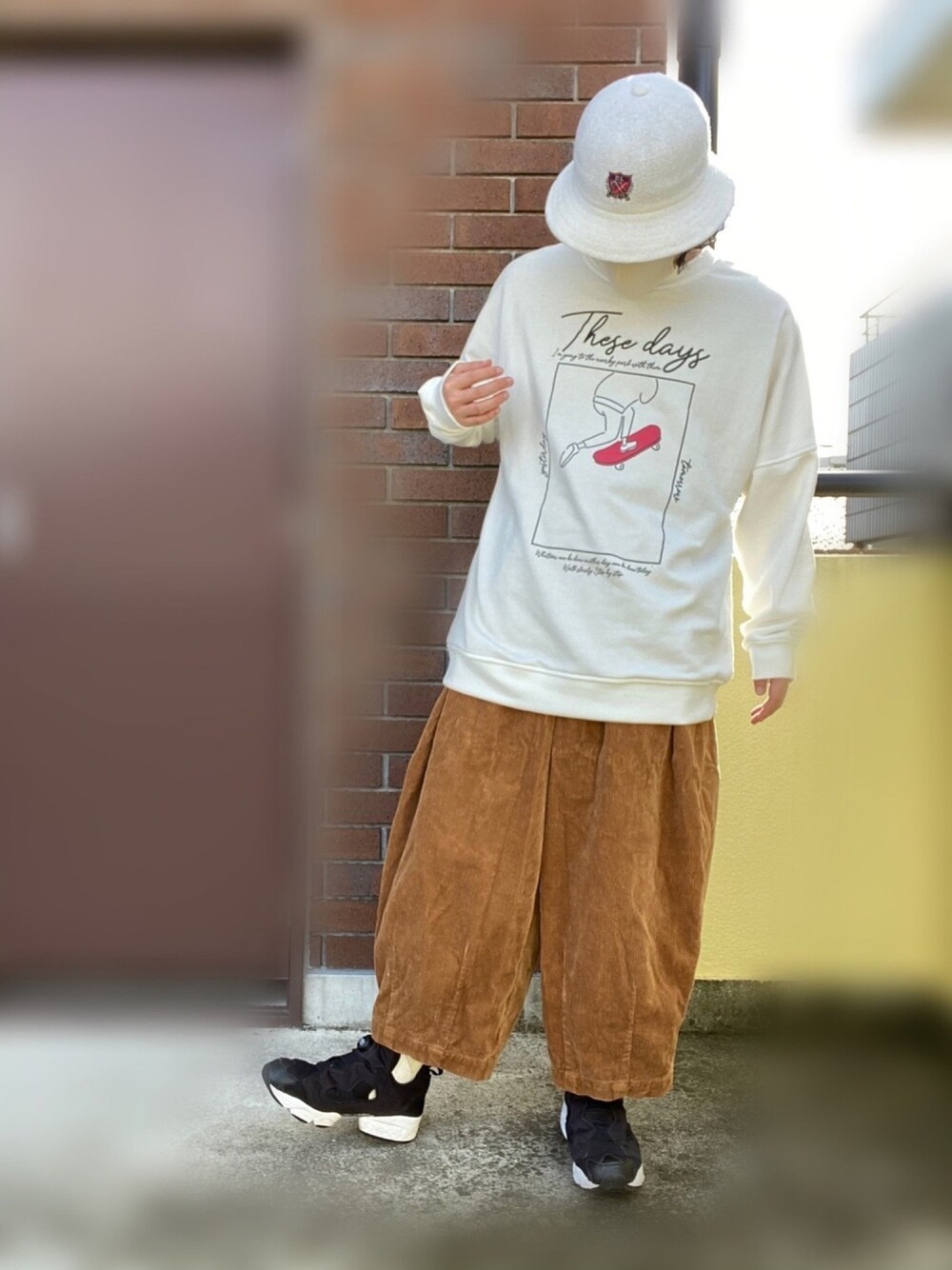 いつも見ていただきありがとうございます! 皆様の良いねやお気に入り登録、フォローのおかげでコーデを楽しく考える事ができています☺️ 今回のこだわりは、トップスです。 一目惚れしまして。 確か4200円くらいやったと思います。 もうめっちゃくちゃ可愛いなと! ドロップショルダーになって尚且つ大きめに作られてるのでゆったりと着れて、 何よりこの柄に惚れました。 赤が良いアクセントになってるのも好きです。 最近、線画アートがプリントされてるスウェットやパーカーを探してて、 その時にタイミング良くあったのでテンション上がりました。 パンツは、スキニーでもワイドパンツでも合うと思います。 自分はバケットハット被ったので、 どうせならストリートっぽくするかって事でワイドパンツ、 秋やしって事でブラウン+コーデュロイにしました。 近頃、一気に冷え込んできましたので、 皆様も体調管理にはお気をつけ下さい 元気な体で、マスクを着用してお出掛けしましょう!