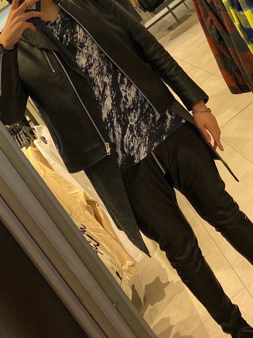 ライダースにレザーのサルエルスキニーを合わせたコーデ! サルエルスキニーなので、ダボッと過ぎずにタイトにふくらはぎにかけての、テーパードで良きしシルエット(๑و•̀ω•́)و そして、ロングカーデで、レイヤードにもなってます! レザーの企画をやっていたので載させて頂きます〇┐ぺこっ