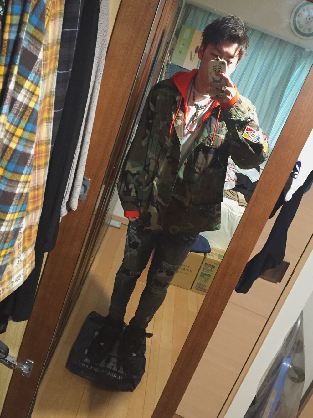 迷彩ジャケットを使ったtotal3個目のコーデですね・・・ 今回はオレンジ色のパーカーに合わせてみました!!意外と迷彩とハマってるかなって思ってます笑 アメリカンイーグルのデニムはやはり良きですね もう1本ほすぃです!! いつもコーデ見てくれてありがとうございます!!